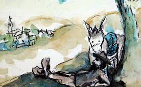 Lo dejo suelto, y se va al prado, y acaricia tibiamente con su hocico, rozándolas apenas, las florecillas rosas, celestes y gualdas... Lo llamo dulcemente: ¿Platero? y viene a mí con un trotecillo alegre que parece que se ríe en no sé qué cascabeleo ideal...